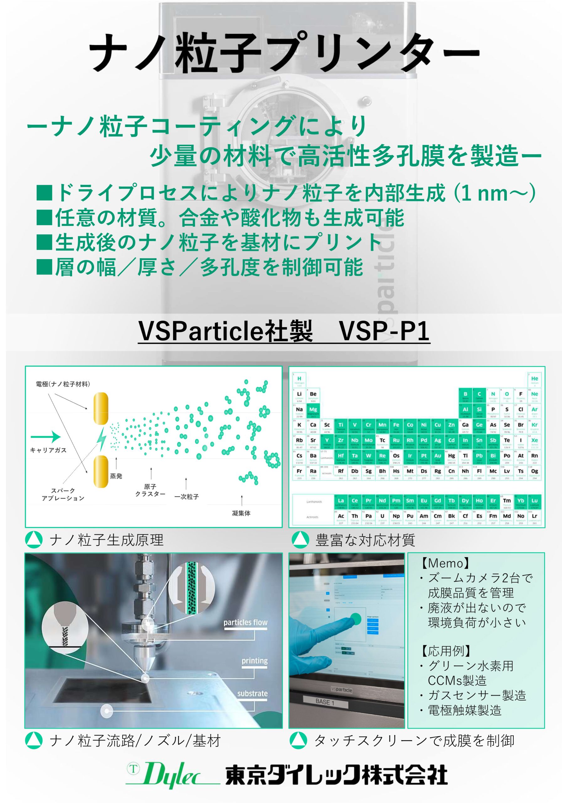 SEMICON Japanは、半導体産業における製造技術、装置、材料をはじめ、車やIoT機器などのSMARTアプリケーションまでをカバーした、エレクトロニクス製造の国際展示会です。現在、最先端の半導体製造プロセスでは、微細化の進歩とともに「シングルナノ」がキーワードとなっております。当社展示ブースでは、液中のナノ粒子計測や製造装置のコンタミ評価に適した、シングルナノサイズパーティクルの粒径・個数計測・分級抽出が可能な計測器『SMPSシリーズ』(実機)や、グリーン水素用CCMs、ガスセンサー、電気触媒などの製造に利用可能な卓上型金属ナノ粒子生成装置『VSP-G1』(実機)、また、卓上型金属ナノ粒子生成装置を組み合わせた、ナノ構造の多孔質層を自動で成膜するナノ粒子プリンター『VSP-G1』(模型)を展示いたします。